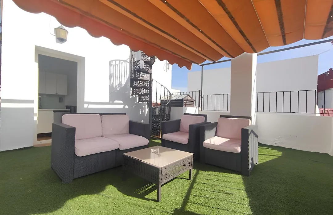 De 4-slaapkamer Plaza Espana Family House Sevilla villa ligt binnen 20 minuten wandelen van de Iglesia del Salvador en biedt een terras met uitzicht op de stad.